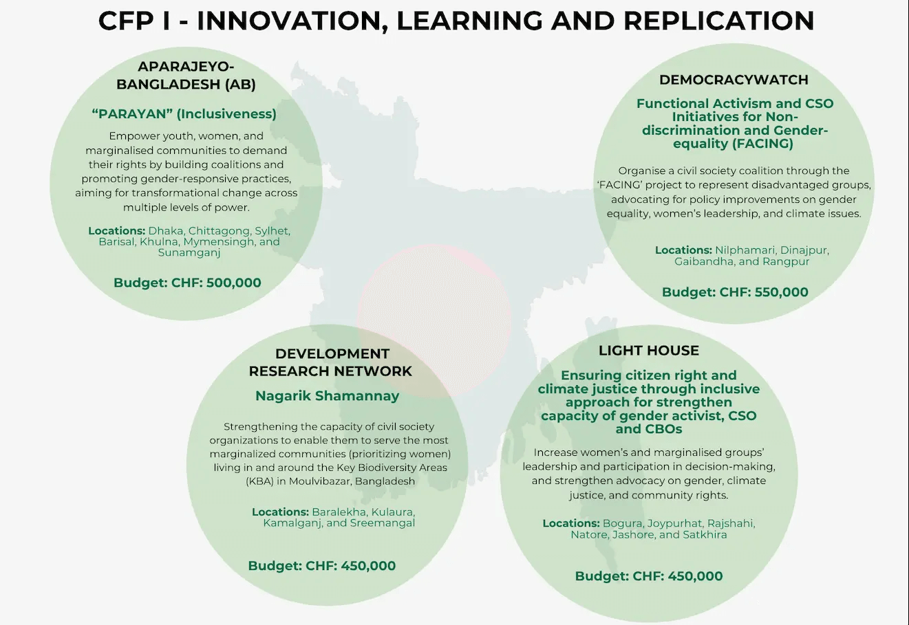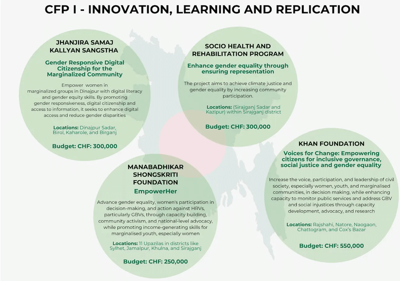 The first Call for Proposals (CfP I) awarded grants through the funding window entitled 'Innovation, Learning and Replication'. This funding window aims to strengthen public advocacy towards greater government accountability under the overarching theme of 'Gender Equality'. The program accepts proposals from diverse CSOs that specifically address gender equality and the empowerment of women and girls, notably focusing on the promotion of their human rights, their participation in decision-making, and their access and control over resources. This comprehensive initiative represents a strategic investment in grassroots organizations that are driving meaningful change in their communities through innovative approaches to gender equality and civic engagement.